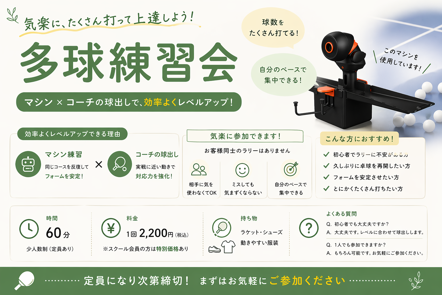 多球練習会(マシン×コーチ)